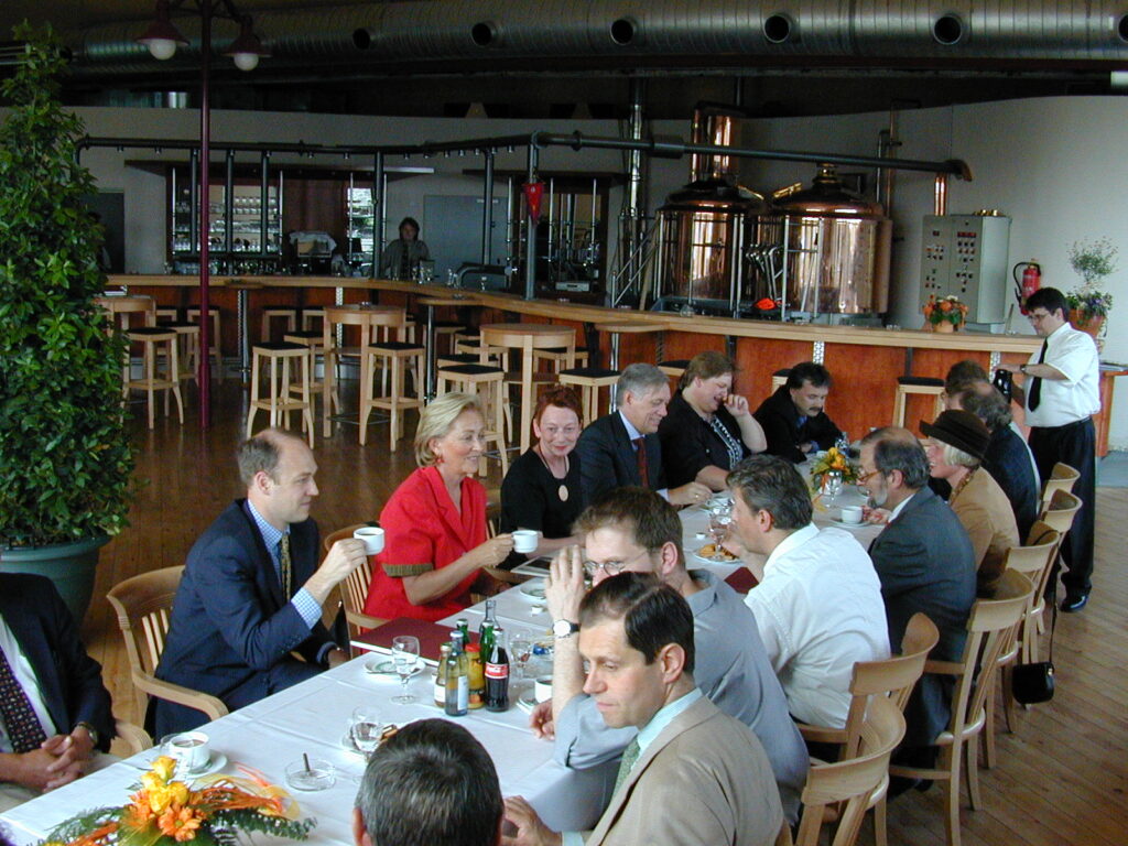 In den ersten Jahren ist die Alte Weberei erfüllt von einer Aufbruchstimmung, die sich nicht zuletzt an den kulturellen Aktivitäten der „Untermieter“ wie der Städtischen Galerie und des Stadtmuseums ablesen lässt: Das 97er „Topping Out“ wird zum Auftakt eines überaus ambitionierten Ausstellungsprogramms der Städtischen Galerie, mit dem der damalige Galerieleiter Martin Köttering nicht nur Stars der nationalen und internationalen Kunstszene, sondern auch Tausende von Besuchern in die Alte Weberei lockt. Allein die Eröffnungsausstellung „Engel und Krieger“ des belgischen Künstlers Jan Fabre verzeichnet über 3.000 Besucher, darunter als Stargast die belgische Königin Paola, deren Ausstellungsbesuch mit einem städtischen Empfang im Grafschafter Brauhaus endet.